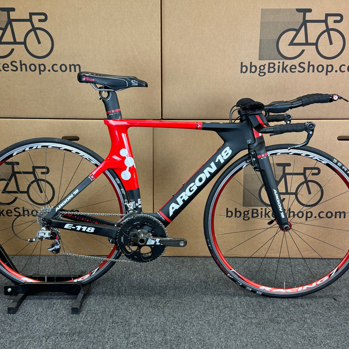 Why We Love It Argon 18's E-118 is the UCI-legal version of the of the E-119. While both bikes will light up the triathlon course and keep you crushing PR's over and over again, the E-118 frame is slimmed down to meet UCI frame requirements for racing time trials. For those looking for a top of the line aero rig capable of leaving the competition behind whether in multisport or time trials, this is your ride.