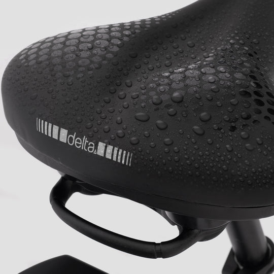 Memory Foam Comfort Saddle - Large Closed cell memory foam and dual shock dampening system to cushion shocks and reduce vibration Reflective printing on nose and rear for added safety Easily mount on standard seatpost clamp Grab handle for easy bike transport