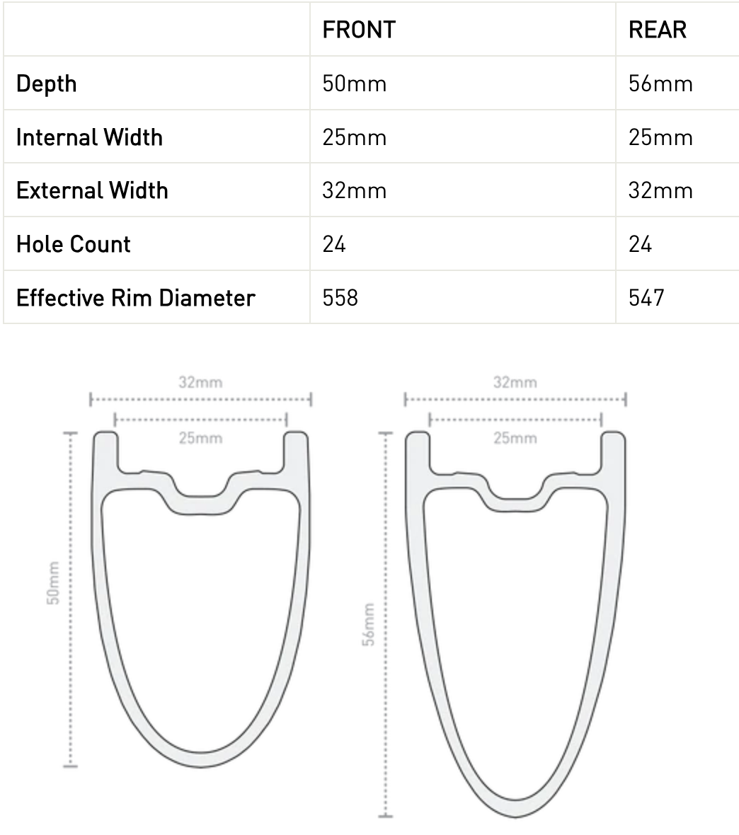 Rim Depth 50 mm (front), 56 mm (rear)