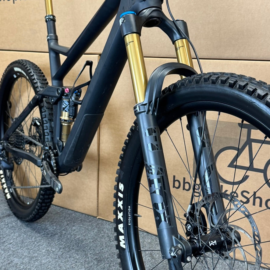 Why We Love It The Stereo 140 HPC SLT gives you the confidence to ride at your best and come out on top. Its combination of low weight and all-mountain performance starts with careful component selection, from the powerful-but-light Magura MT8SL hydraulic disc brakes to the stiff, featherweight Sram X1 Carbon crank. A Fox 36 Float Factory fork and Float X Factory shock serve up boulder-smoothing performance. There's a remote dropper post to put you firmly in control. Sram's iconic GX Eagle 12-speed groupset gives you the range you need to tame any trail. And lightweight Maxxis tyres on a Newmen Evolution wheelset keep the show on the road. Or, to be more accurate, off it…