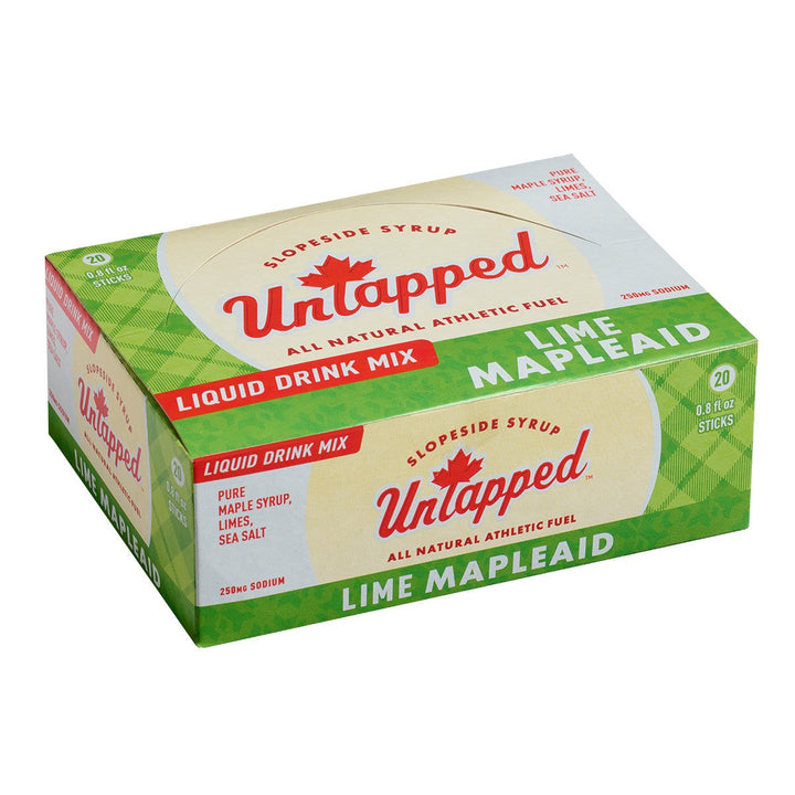 Lime Mapleaid is simply crafted from organic maple syrup sourced directly from family-owned farms, organic lime juice and sea salt. Offering 80 calories and 250mg of sodium, Lime Mapleaid is the perfect natural hydration solution to power you through your active lifestyle. Whether you’re an athlete, fitness enthusiast, or simply someone who values clean and sustainable products, UnTapped Mapleaid offers a delicious and nutritious way to replenish your body.Ingredients:Vermont Maple Syrup, Lime juice, Sea Salt. ORGANIC.Nutrition Facts:Nutrition Facts Servings: 1, Serv. size: 1 packet (32g), Amount per serving: Calories 80, Total Fat 0g (0% DV), Sodium 250mg (13% DV), Total Carb. 20g (7% DV), Total Sugars 18g (Incl. 12g Added Sugars, 24% DV), Protein 0g, Calcium (2% DV), Iron (2% DV), Potas. (64mg, 1% DV) Thiamin (2% DV), Magnesium (1% DV), Zinc (3% DV), Manganese (0% DV), Not a significant source of sat. fat, cholest., fiber and vit. D.