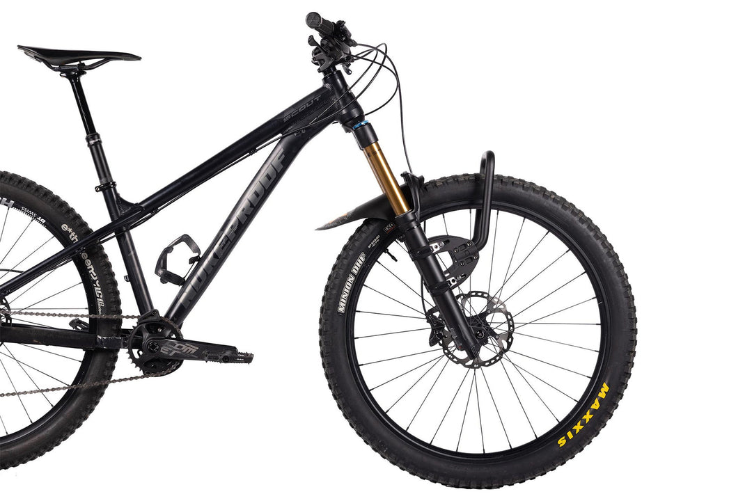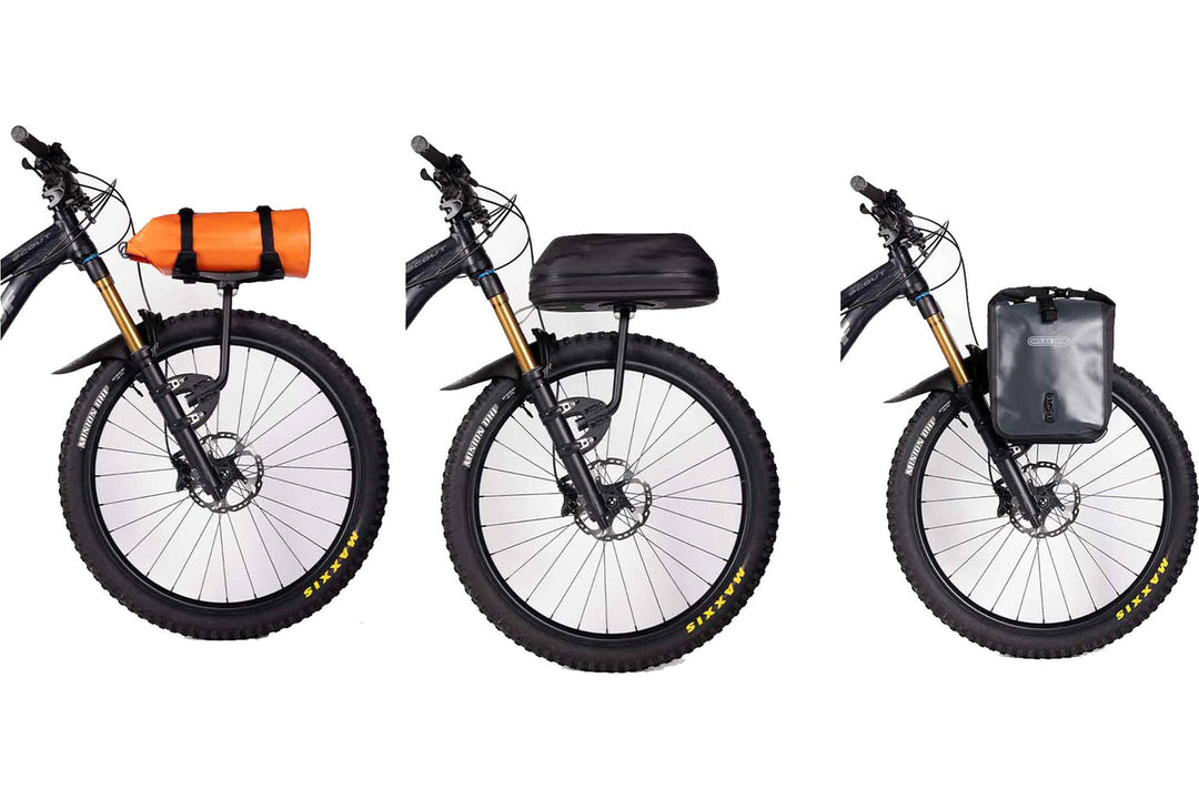 The bike rack mountain bike and E-mountain bike users love the most, the Spider Front Rack was designed off our award winning Spider platform. Carrying more gear, or matching Panniers front and back has never been easier, you’ll love the light weight, robust build and ease of use that the Spider is renowned for.The newest addition to our Spider series, this rack is the base layer of your aeroe system up front. The Spider Front Rack is compatible with all other aeroe accessories. Add a pannier receiver, a Spider Cradle or Quick Mount Pod for a weekend ride, or transfer the rack between bikes, and you’re ready to ride your way.Key Features Make any eMTB or MTB bike commute or adventure-ready. Mix n’ match your perfect combination. Made for work and play Rack lets you still use your front fork suspension Fit and forget Looks as good as it functions (beautifully) Feel the freedom of taking the long way home from your commute, or on the trails, with the peace of mind your cargo is safe no matter the bumps on the way.Specifications Rack only weight: 641g (1.4 lbs). Load capacity: 16kgs (35 lbs). Refer to Cradle, Pod and Pannier Receiver for individual weights. Materials: High grade stainless steel, Powder coated aluminium, glass reinforced nylon and silicone coated straps.